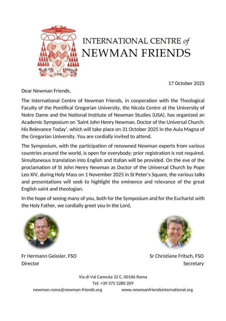 Academic Symposium at the Pontifical Gregorian University – 31 October 2025 – St John Henry Newman. Doctor of the Universal Church. His Relevance Today