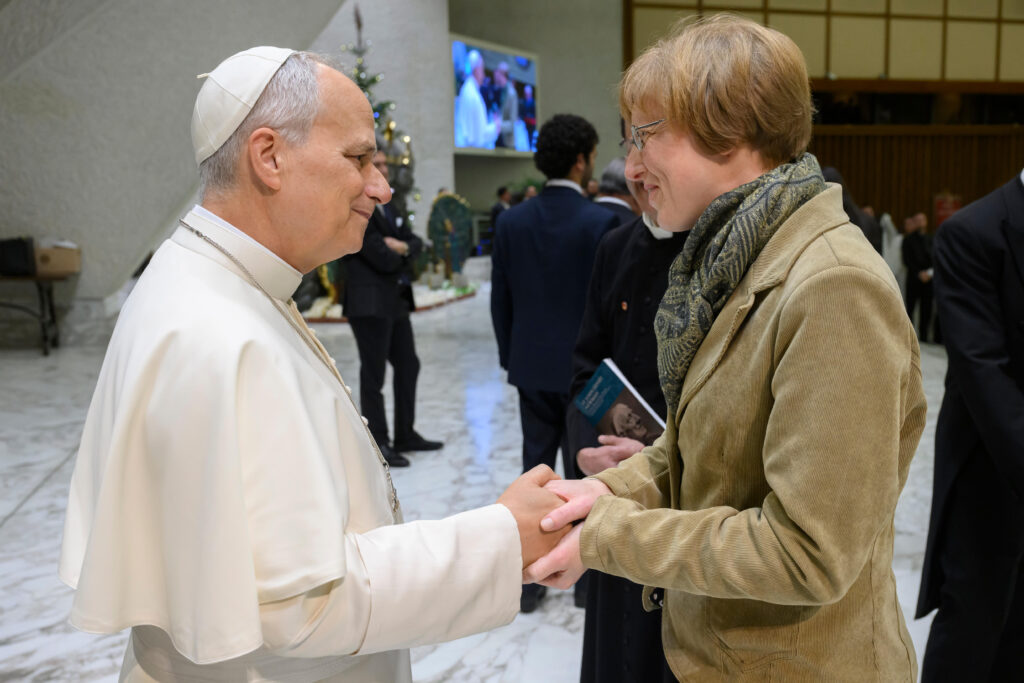 Lors de l’audience générale du 7 janvier 2026, le Père Hermann Geissler FSO, directeur du Centre Newman, a remis au Saint-Père pape Léon XIV l’édition anglaise de son livre sur le nouveau docteur de l’Église. Sœur Anna Düringer FSO, qui a lancé la promenade à Rome avec Newman (Newman Walk), a également eu l’occasion de saluer le Saint-Père.